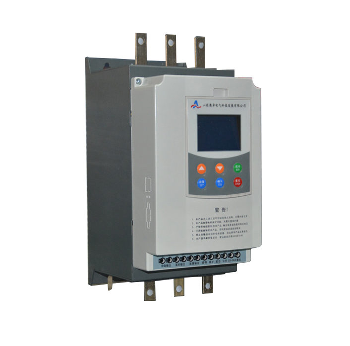 智能型在線式軟啟動柜是本公司最新研發的一款全新產品,本產品為三進三出可控硅全時在線式結構,擺脫了外置旁路接線(不需要外置接觸器),簡化了一二次布線成本:內部采用大功率風冷散熱器和高速軸流風機,確保軟啟動器長時間可靠運行,是軟啟動應用走向普及的典范。